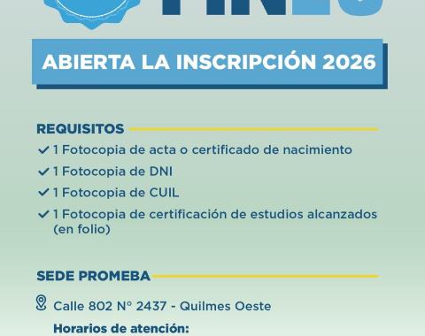 Inscripción para el programa FINES y para cursos y talleres 2026