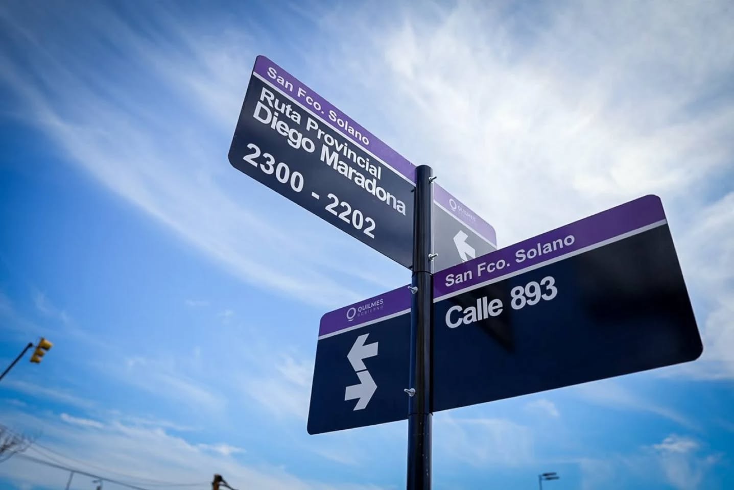 La intendenta de Quilmes, Mayra Mendoza, encabezó este jueves junto al diputado provincial, Facundo Tignanelli, autor del proyecto de ley, el acto de señalización vial con su nuevo nombre a la avenida Diego Armando Maradona, ex Gobernador Monteverde, en su intersección con calle 893, en San Francisco Solano, en el marco del 65º aniversario del nacimiento del ya fallecido astro e ídolo argentino, considerado uno de los mejores futbolistas de la historia.